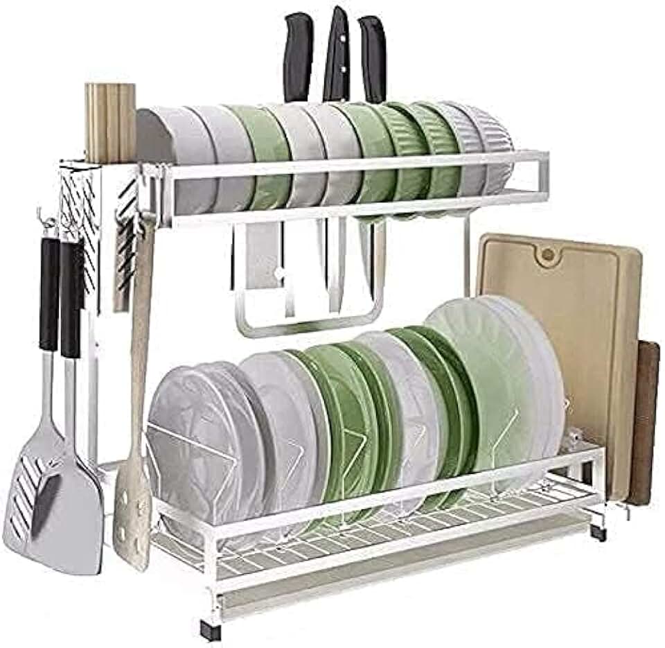 Dish Drying Rack, Space-Saving Dish Rack with Adjustable Swivel Spout Bowl Chopsticks Utensil Holder Large Capacity Organizer for Kitchen Counter