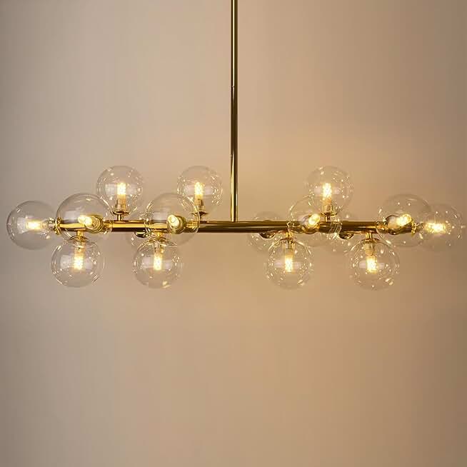 Dining Room Chandelier Over Table, Mid Century Modern Chandelier, 16-Light Gold Linear Chandeliers for Dining Room, Dining Room Light Fixture with Transparent Glass Globe Lampshade