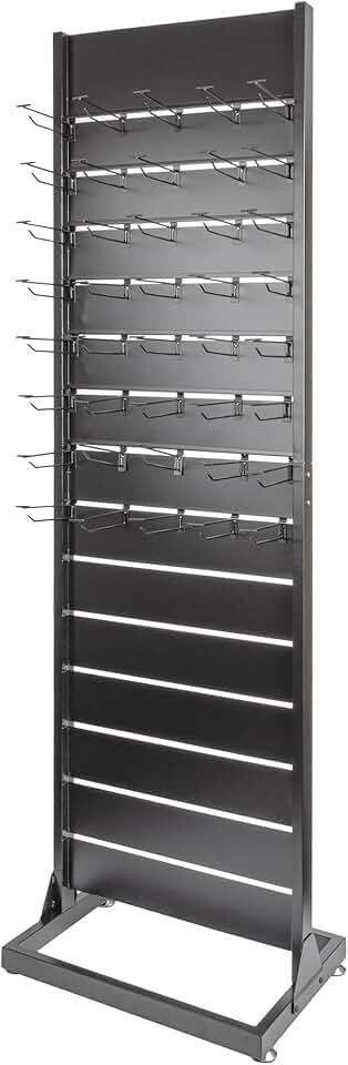 Brybelly Retail Slatwall Jewelry Spot Merchandizer with 40 Adjustable Peg Hooks, Freestanding 72-inch Display Rack, Black