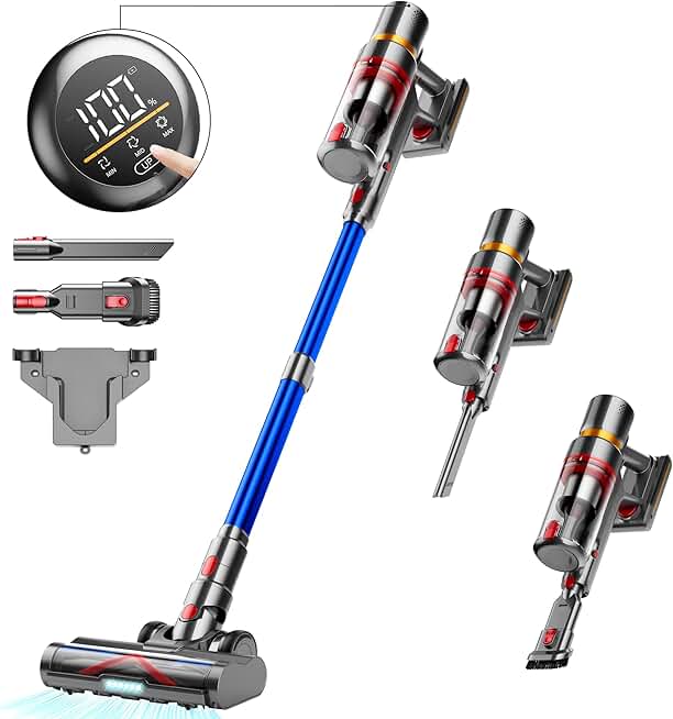 Cordless Vacuum Cleaner, 550W/36Kpa Cordless Stick Vacuum Cleaner with LED Display, Stick Vacuum Cleaner with Max 55min Runtime,Touch Screen,1.5 L Dustcup, LED Display