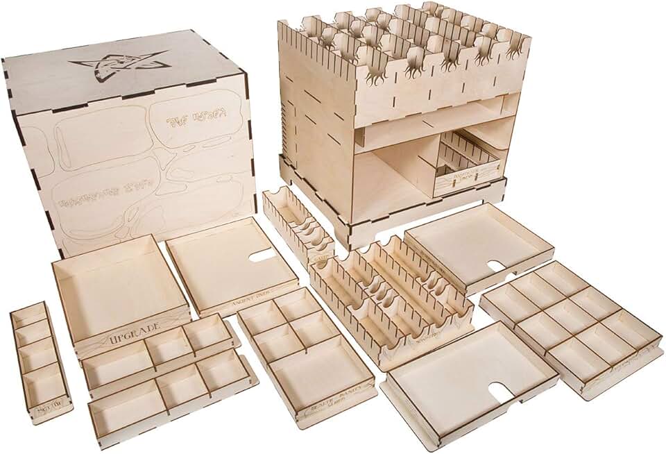 The Broken Token Arkham Horror 2nd Edition Compatible Game Crate - Wooden Storage Box with Multiple Trays and Dividers
