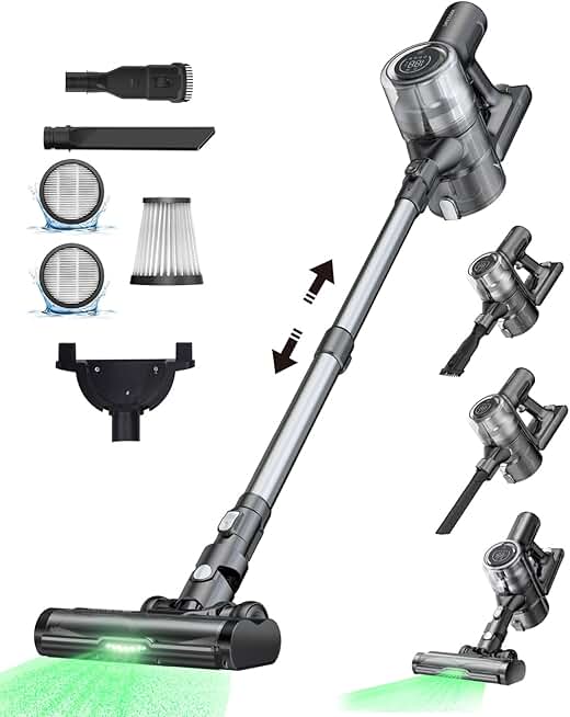 Proscenic P13 Cordless Vacuum Cleaners for Home,35Kpa Suction Lightweight Stick Vacuum with Green Light,Anti-Tangle Brush,LED Display,Max 50mins Runtime,Ease of use Vacuum for Pet Hair,Floor&Carpet