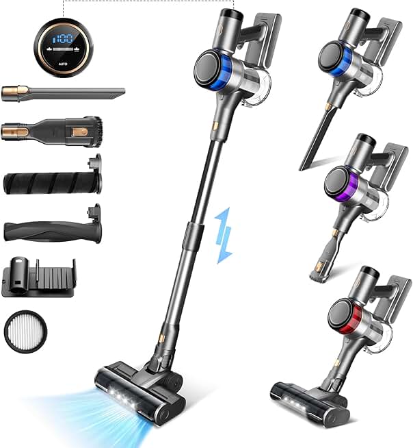 Cordless Vacuum Cleaner, 400W Stick Vacuum with 30Kpa Powerful Suction, 55min Runtime, Smart Induction Auto-Adjustment, Rechargeable Vacuum Cleaners for Home Carpet Floor Pet Hair,LED Display
