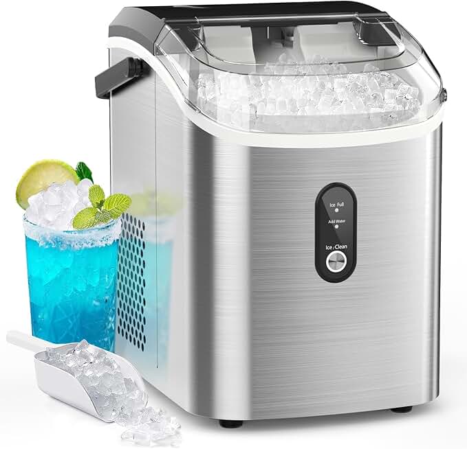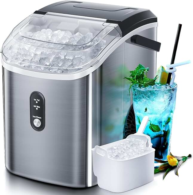 Kndko Nugget Ice Maker Countertop with Handle, Ready in 6 Mins, 35lbs Per Day, Pebble Ice Machine with Soft Chewable Ice, Self-Cleaning, One-Click Operation, for Home/Party/RV/Camping