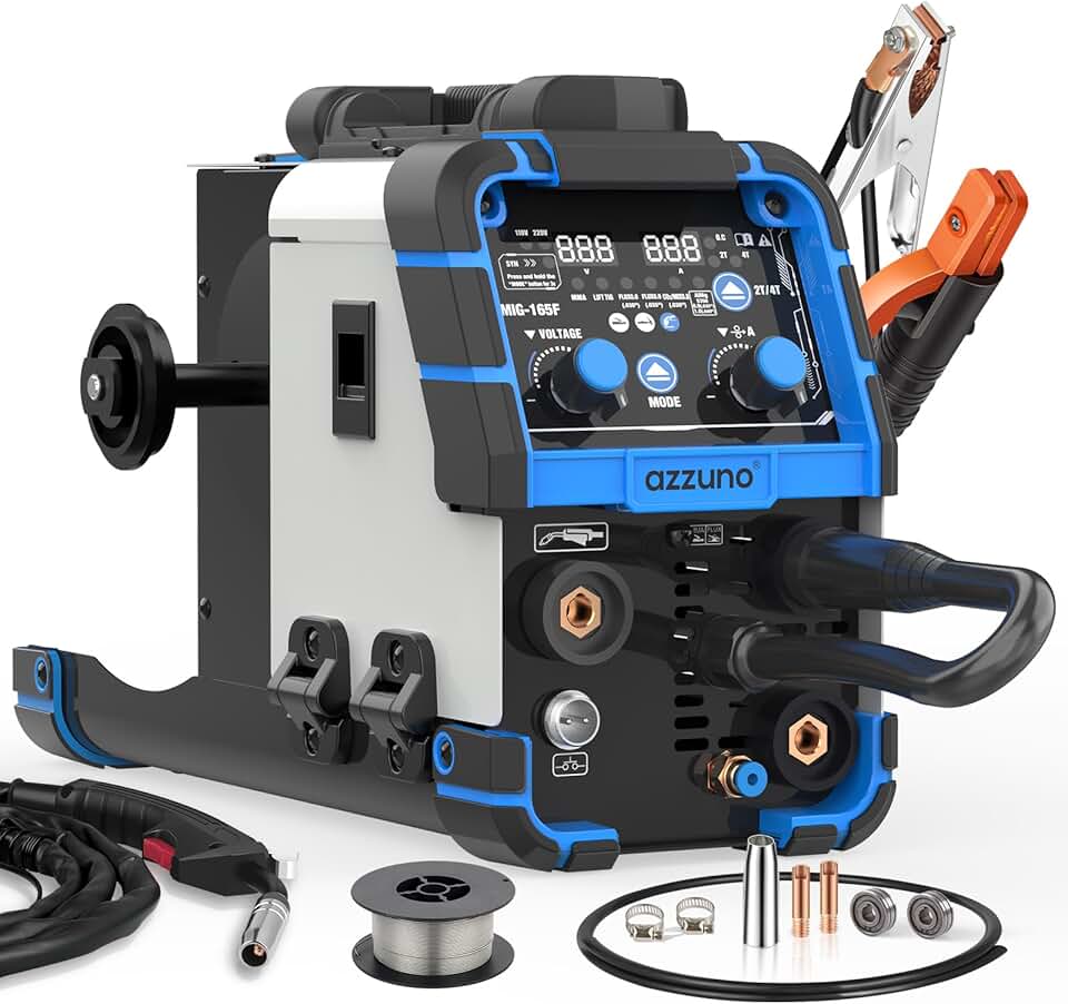 AZZUNO Aluminum 165A MIG Welder 110V/220V, 5-in-1 MIG Welding Machine with Flux Core MIG/Gas MIG/Aluminum MIG/Stick/Lift TIG, Compatible with 1 lb~10 lbs Welding Wire