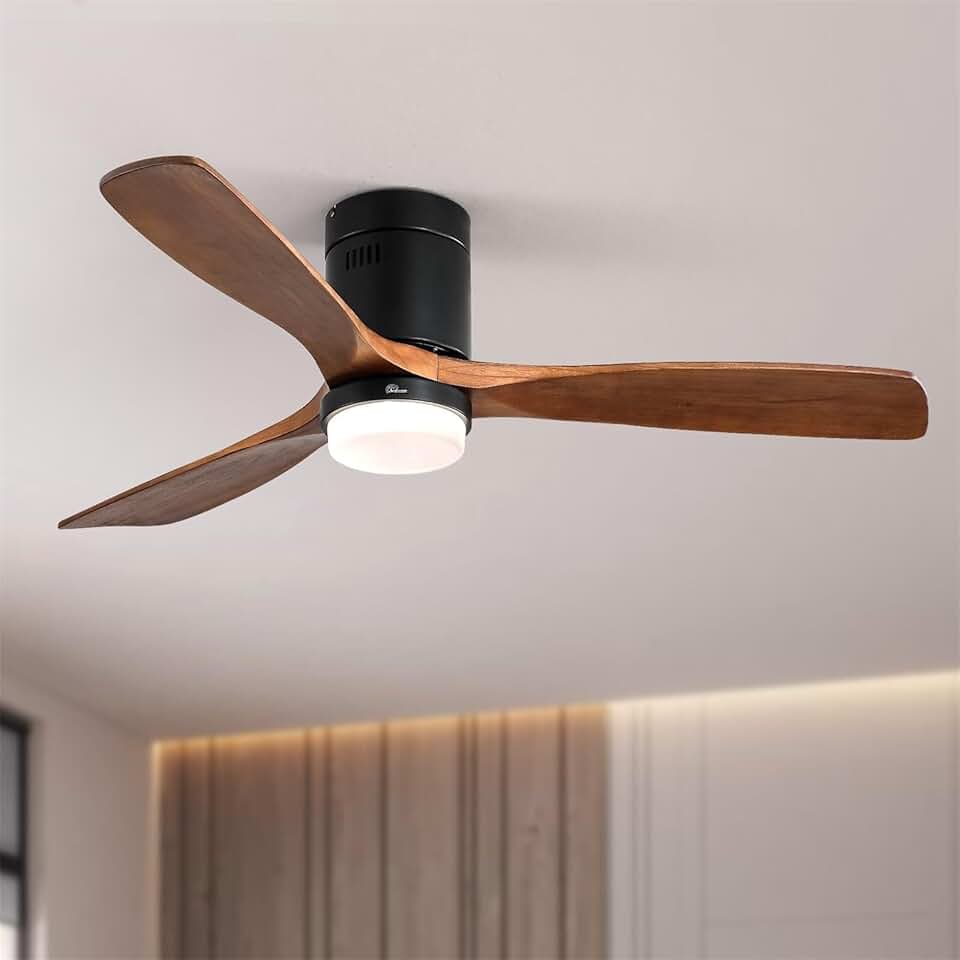 52 Inch Wooden Ceiling Fan, with 18W Led Light 3 Solid Wood Blades, Remote Control Reversible DC Motor with ETL Ceiling Fan for Home