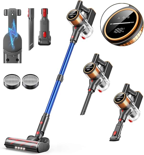 Cordless Vacuum Cleaner, 45Kpa 550W 60Mins Vacuum Cleaners for Home, Stick Vacuum Cordless Rechargeable, Wall Mount Charging, Self-Standing, Household Vacuum for Pet Hair, Carpet, Hardwood Floor
