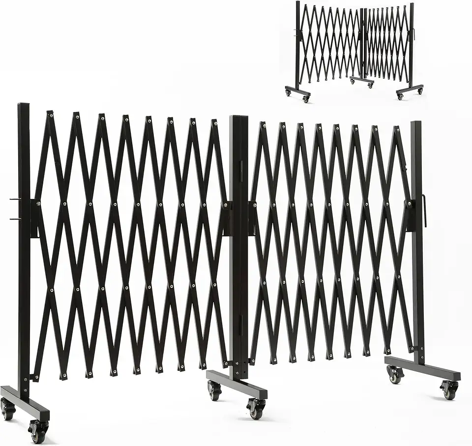Metal Retractable Barricade Gate, 0-180 Degree Rotating, Expandable Safety Barrier Gate, 18 Feet, Portable Adjustable Fence Driveway Gate, Indoors and Outdoors (A+: Black, rotatable)…