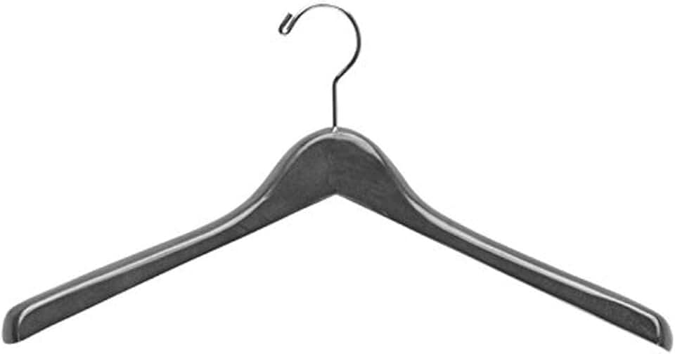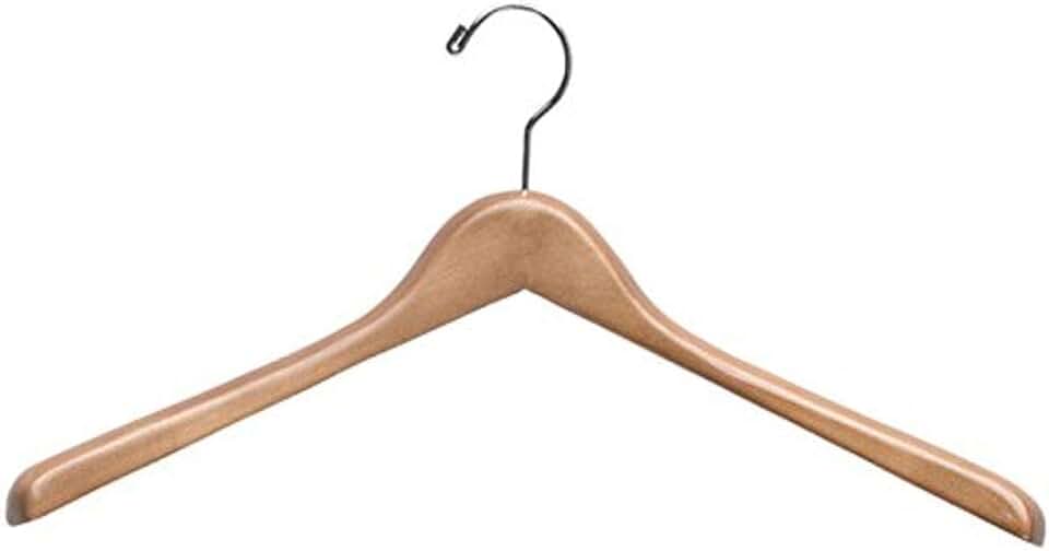 Wood Concave Broad Shoulder Garment Hanger with Shiny Chrome Hook