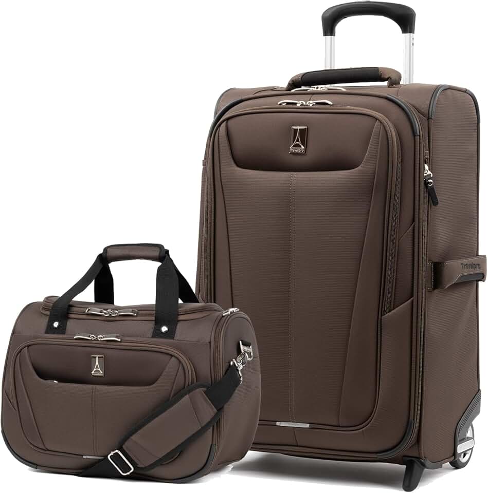 Travelpro Maxlite 5 Softside 2pc Set Expandable Carry On Upright 2 Wheel Luggage/Soft Underseat Tote, Lightweight Suitcase, Men and Women, Mocha