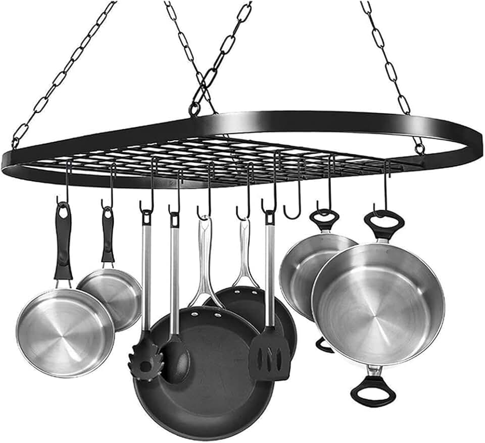 GYLXW Hanging Pot Pan Rack for Ceiling, Ceiling Mounted Cookware Hanger Organizer with 10 Hooks for Home Kitchen Household