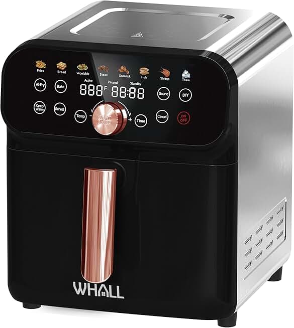 WHALL Air Fryer, 6.5QT Air Fryer Oven with LED Digital Touchscreen, 12 Preset Cooking Functions Air fryers, Dishwasher-Safe Basket, Stainless Steel/BS