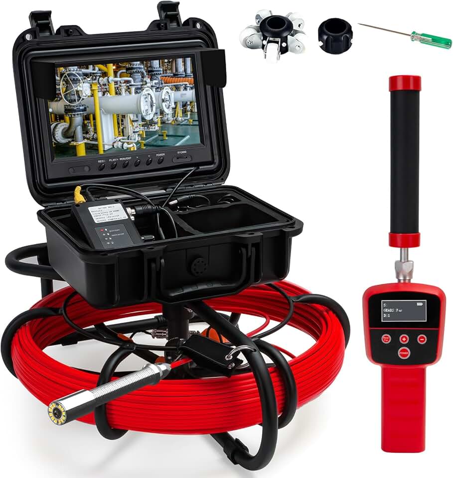 Sewer Camera with 512HZ Locator 150FT,9IN 16GB Video Screen 12 Adjustable LEDs,Waterproof JQKJCAM HD Snake Sewer Duct Inspection Camera with Light and 7MM Firm Meter Couter Cable for Plumers(50m)