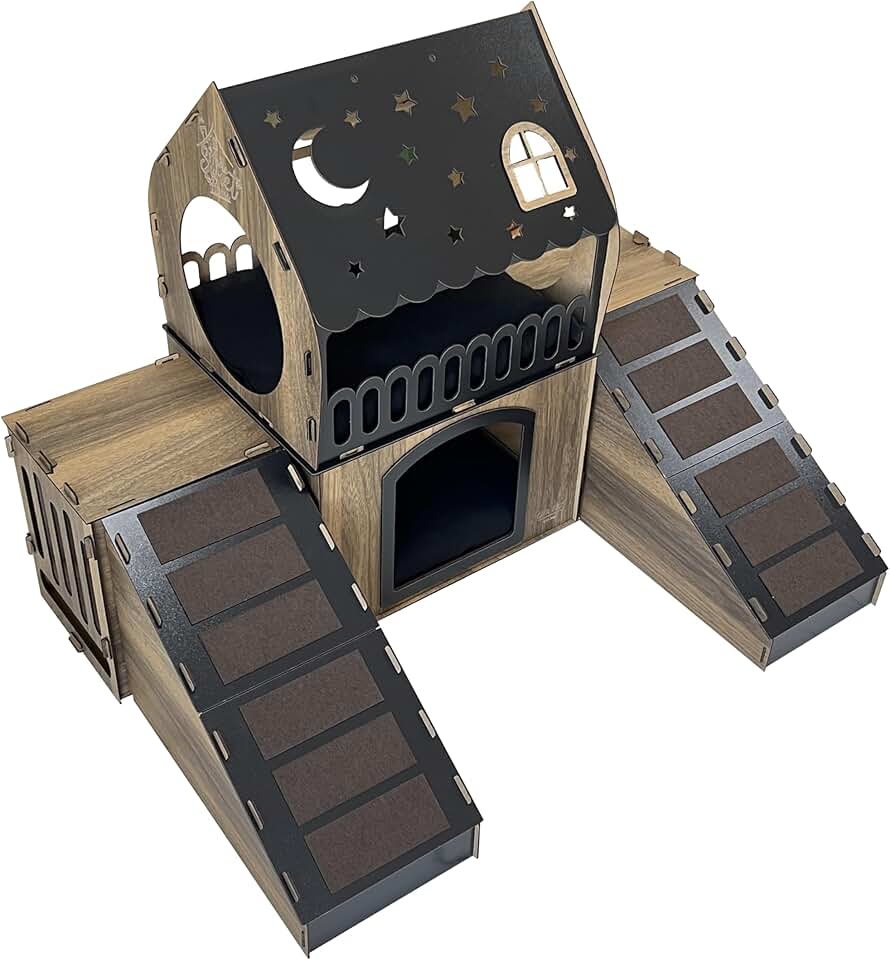Two-storey economical pet house, wooden rabbit house, modern pet castle, modern cat house, wooden cat house, cat, dog and rabbit houses, little dog house, QPRPET (X-Large) (Medium)