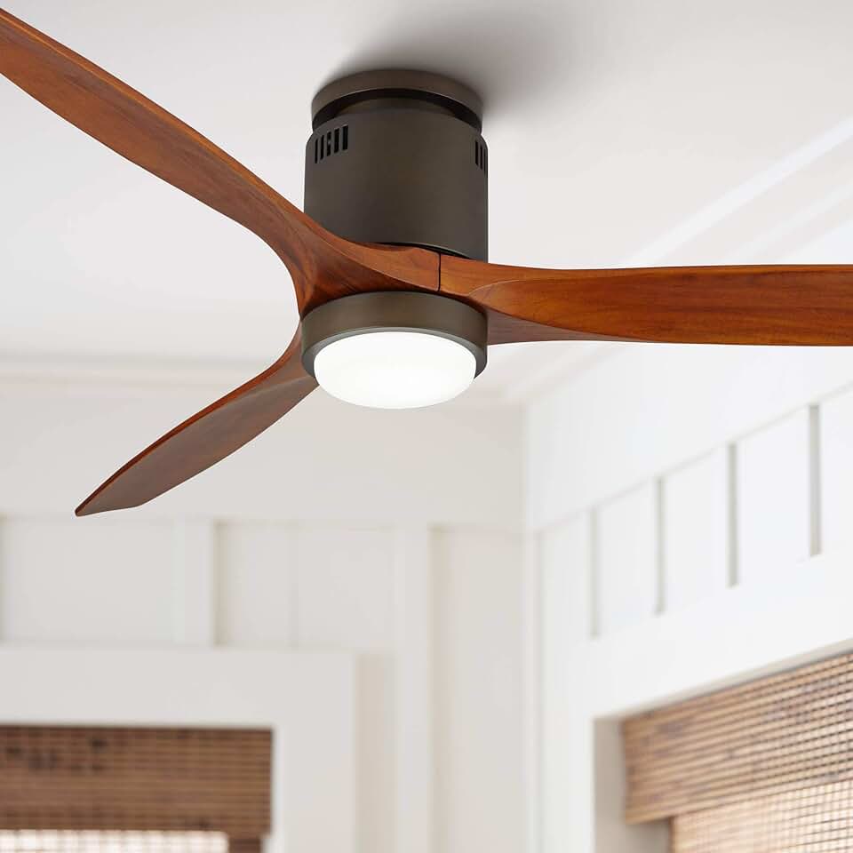 52" Windspun Modern 3 Blade Low Profile Hugger Indoor Ceiling Fan with Light LED Dimmable Remote Oil Rubbed Bronze Walnut Wood for House Bedroom Living Room Home Kitchen Dining Office