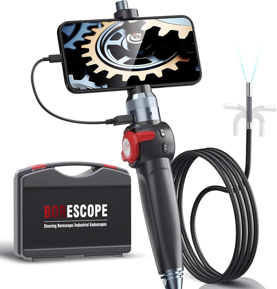 Ralcam Articulating Borescope, 2-Way 180° Inspection Camera with 8.5mm Lens IP67 Waterproof Probe, 10 Adjustable LED Light, Endoscope Compatible with Android & iPhone, 5.0FT/1.5M Semi-Rigid Cable