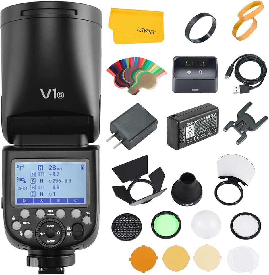 Godox V1 V1-S V1S Round Head Camera Flash for Sony, 76Ws 2.4G Wireless 1/8000 HSS TTL Sony Speedlite, 10 Level LED Modeling, with Godox AK-R1 Accessories Kit Compatible for Sony Camera