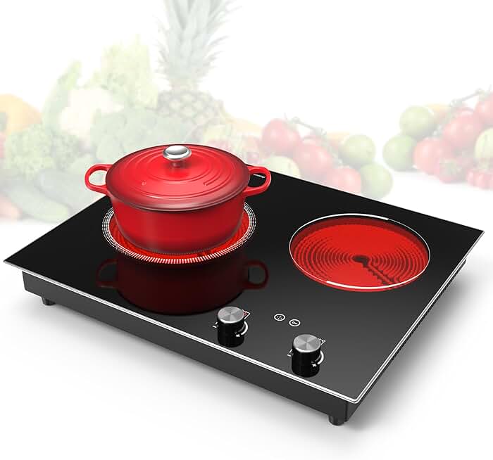 Electric Cooktop,3000W Built-in & Countertop Electric Burner,Electric Stove Top with10 Heating Level, Timer & Kid Safety Lock, LED Knob Touch Control 2 Burner Electric Cooktop (No Plug)