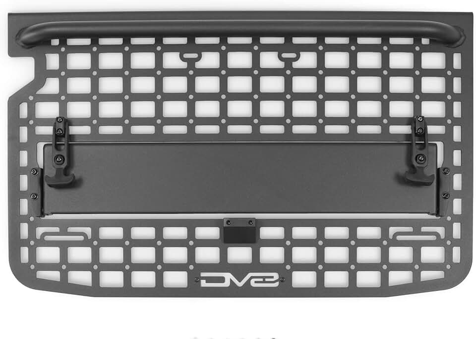 DV8 Offroad Tailgate Molle Panel for The 2021-2024 Ford Bronco | Perfect for Molle Bags, Knife Sheaths, Med Kits, Recovery Gear & More | Drop-Down Tray for Holding Drinks & Other Gear While at Camp