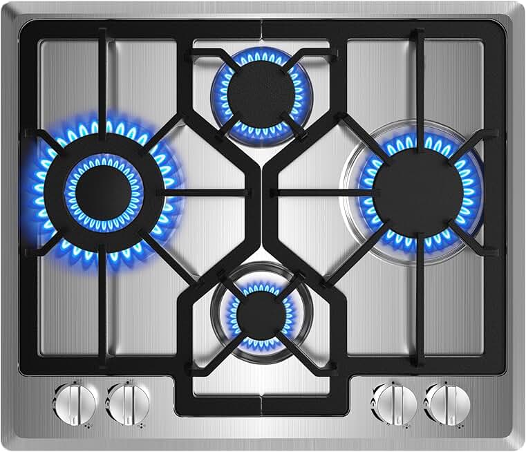 24 inch Gas Cooktop, Bulit-in Gas Stove Top with 4 Burner, NG/LPG Convertible Cooktops, Dual Burner Propane Cooktop with Thermocouple Protection, Stainless Steel