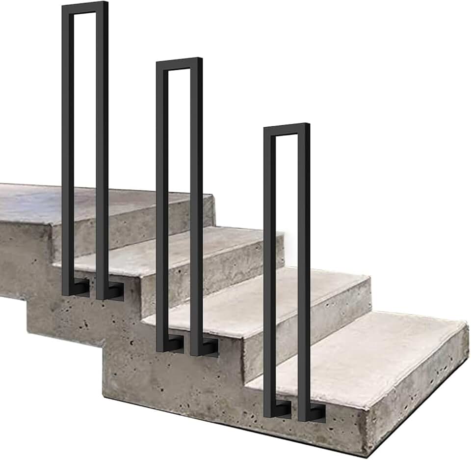 Black Metal Wrought Iron U-Shaped Stair Railing for Outdoor and Indoor, Modern Wall Mounted Handrails Balustrade Foot Rail Support