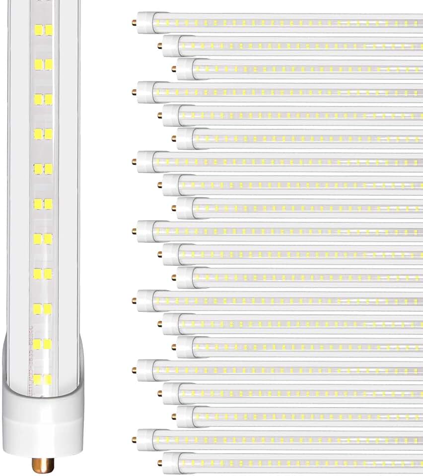 8ft LED Bulbs, 8 Foot LED Tube Light (20 Pack) 45W 6000lm 6500K, Super Bright,T8 Single Pin FA8 Lights, Clear Cover,8 Foot LED Bulbs to Replace T8 T12 T10 Fluorescent Light Bulbs