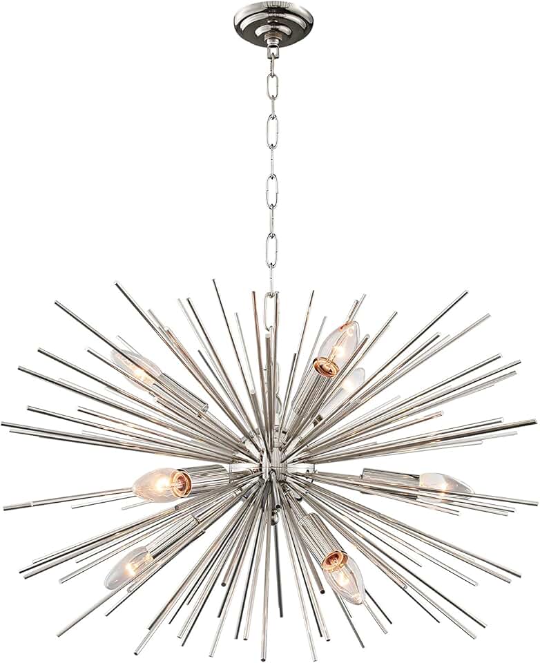 Modern Nickel Sputnik Chandelier 9-Light Dining Room Chandelier Light Fixture for Living Room, Bedroom, Kitchen, Entryway, Foyer, 24in 13LB Solid Metal