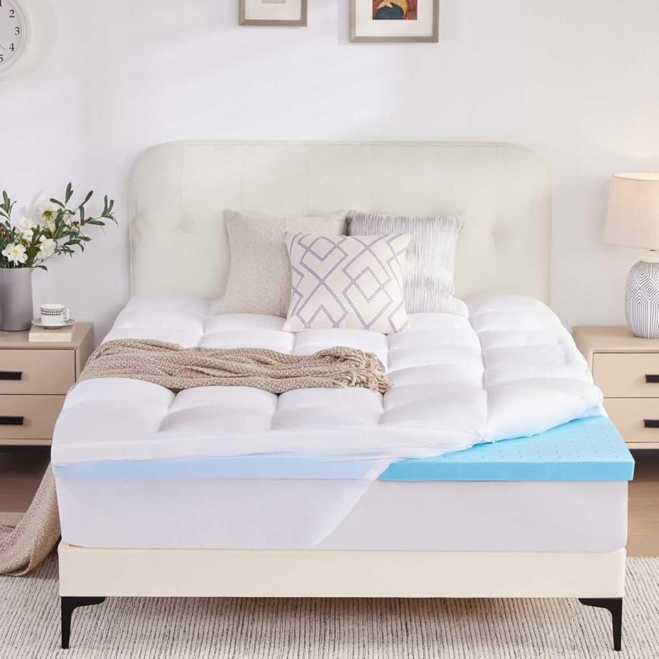 SINWEEK Dual Layer 4 Inch Memory Foam Mattress Topper King Size, 2 Inch Cooling Gel Memory Foam Plus 2 Inch Extra Thick Pillowtop Cover, Pressure Relieve Soft Mattress Pad,Blue