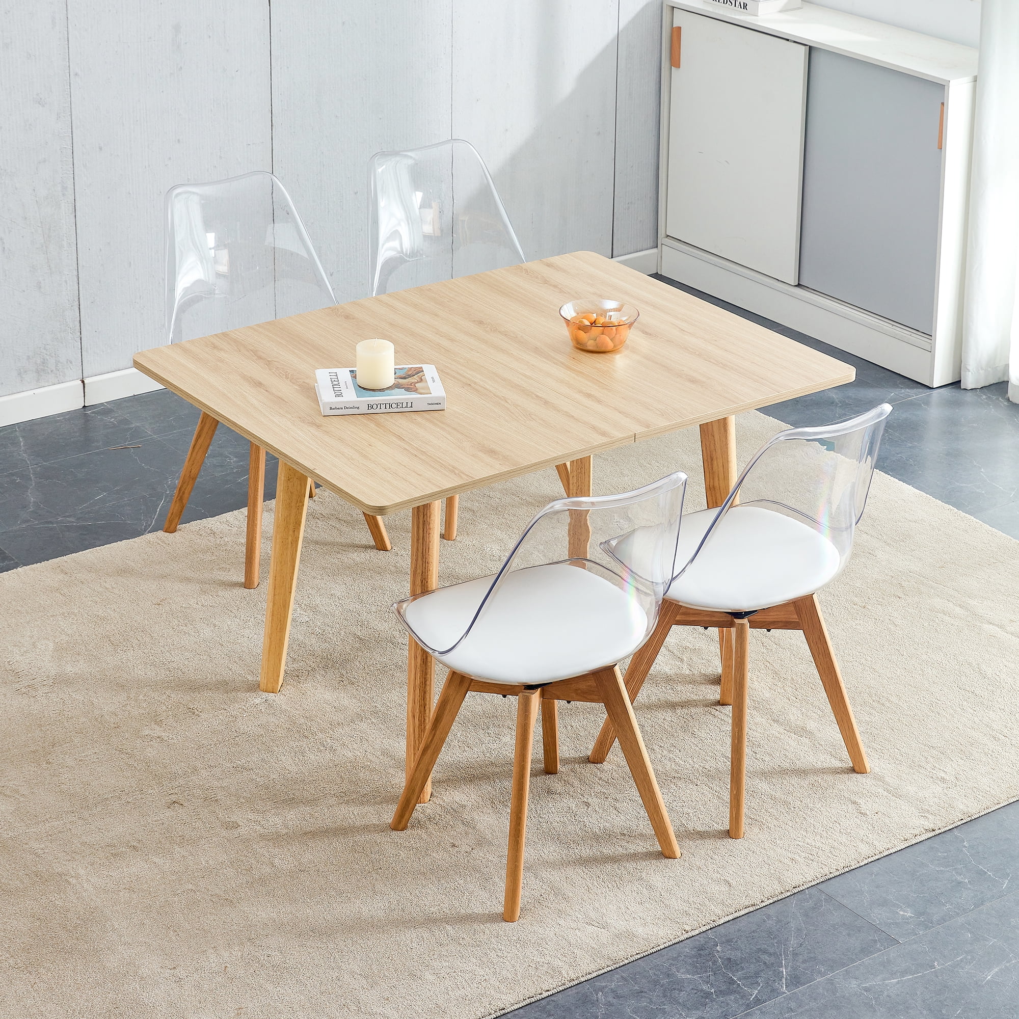 Wood Folding Desk & Modern Rotating Chairs Set: Features MFC Tabletop and Rubber Wooden Legs. Suitable for Offices or Kitchens. PET Backrest, PU Seat Cushion