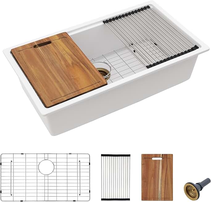 33 Granite Composite Kitchen Sink - Fulorni 33"x19" Kitchen Sink Undermount Ledge Workstation White Granite Quartz Composite Under Counter Single Bowl Sink Basin
