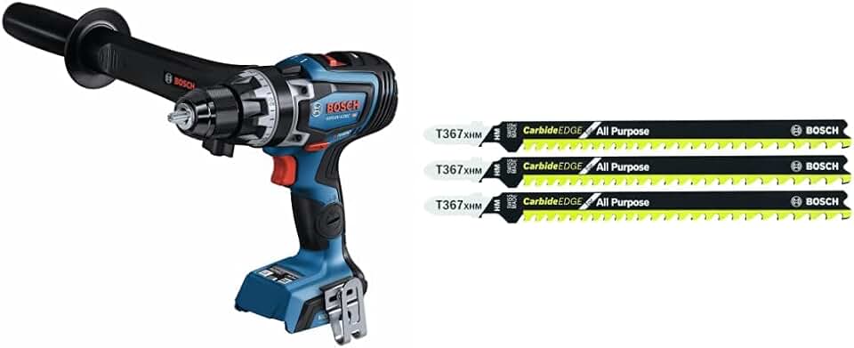 Bosch GSR18V-1330CN PROFACTOR 18V Connected-Ready 1/2 In. Drill/Driver (Bare Tool)&BOSCH T367XHM3 5-7 TPI Carbide Edge T-Shank Jig Saw Blades for All-Purpose (3 Piece), 5-3/16