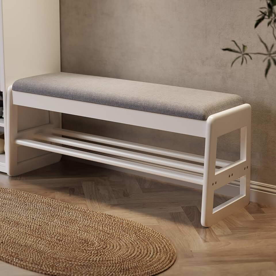 Shoe Rack Bench with Cushion,2 Tiers Shoe Bench with Flip-Open Storage Box,Wood Entryway Bench for Hallway, Mudroom(White 2-Tier,39.4")