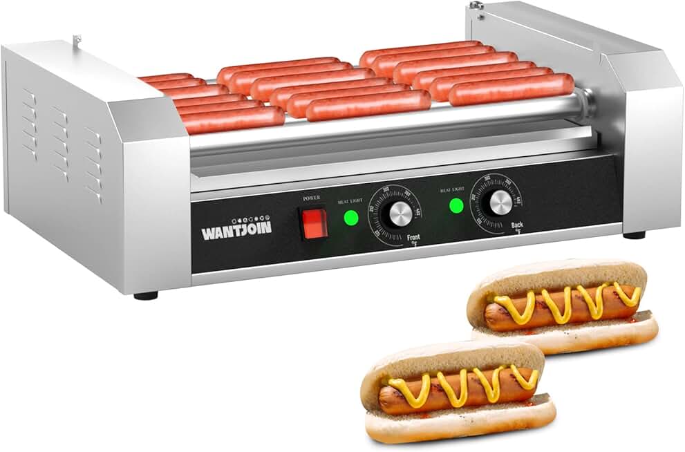 WantJoin Hot Dog Grill Machine, Commercial Electric Hot Dog roller, 900W Sausage Machine Hot-dog 7 Roller Grill Cooker Machine (silver)