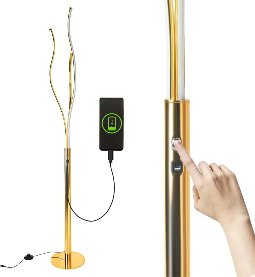 70 inches 36W Creative Tree Brance of Floor Lamp,Modern 3-Colour Temperature LED Stand up Lamp with USB Charging Port for Living Room,Bedroom Relaxed Sense of Atmosphere (Gold)