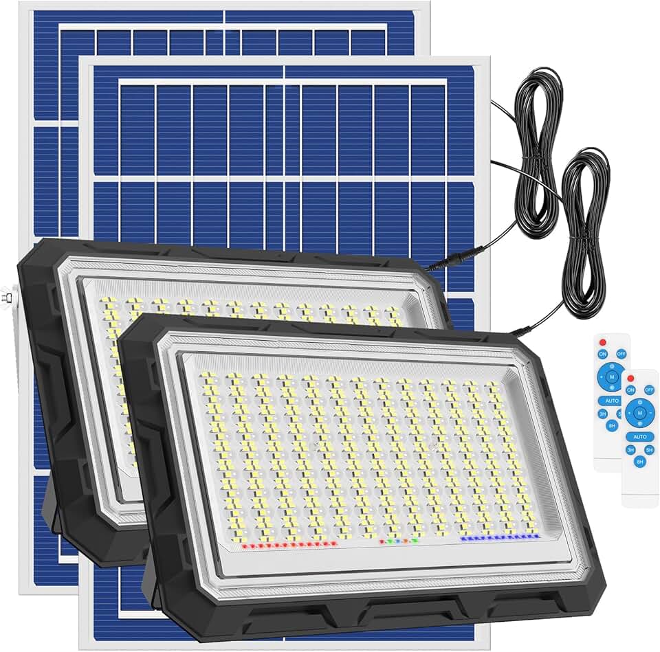 CEDIO Solar Flood Lights Outdoor, 1000W 50000LM Solar Lights Outdoor Waterproof, Solar Floodlights with Remote Control, LED Flood Light Outdoor Dusk to Dawn, Solar Street Lights for Garage, 2 Pack