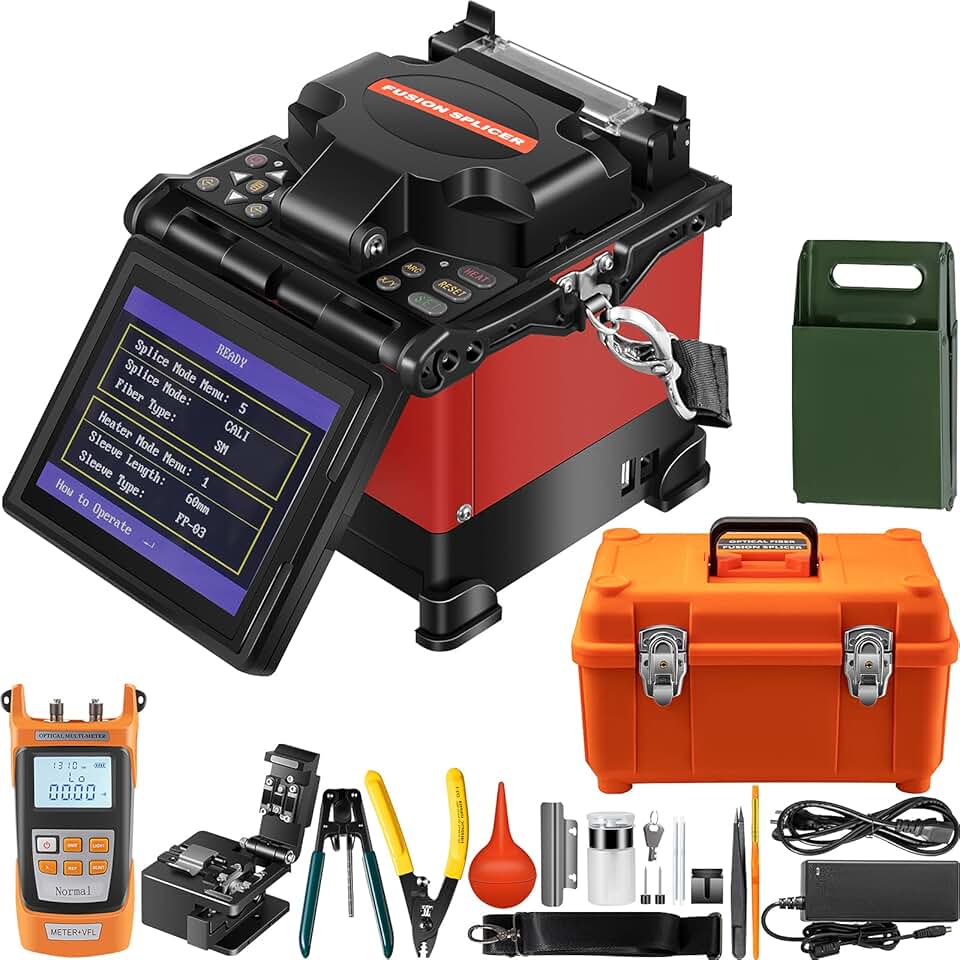Mophorn Fiber Fusion Splicer Automatic Focus A-80S FTTH Fiber Optic Fusion Splicer Kit 5 Inch Digital LCD Screen Fusion Splicer Machine Optical Fiber Cleaver Kit