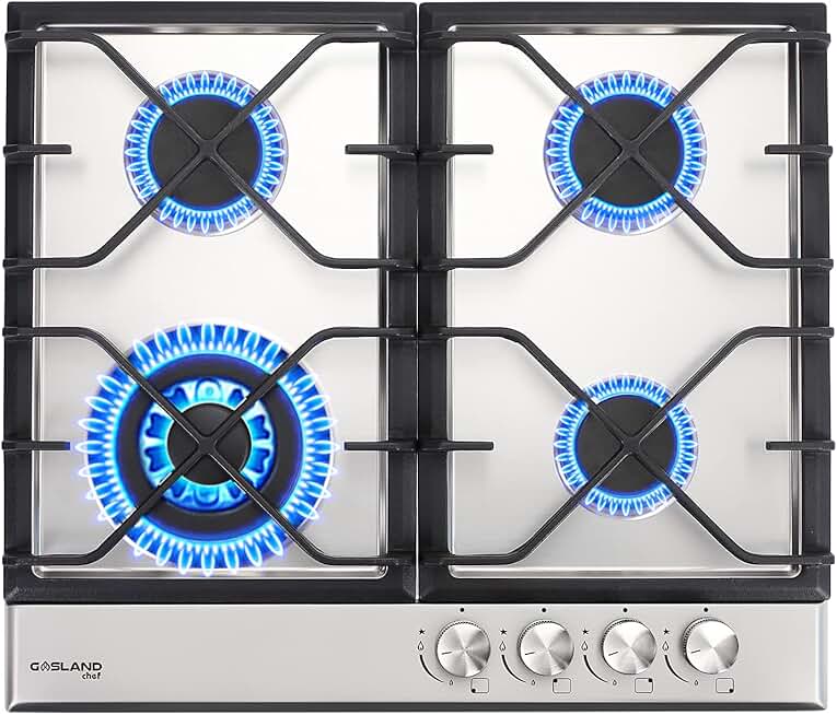 4 Burner Gas Cooktop, GASLAND GH60SF 24 Inch Gas Stovetop, NG/LPG Convertible Natural Gas Propane Cooktops, High Power Burner Gas Hob with Thermocouple Protection, Stainless Steel