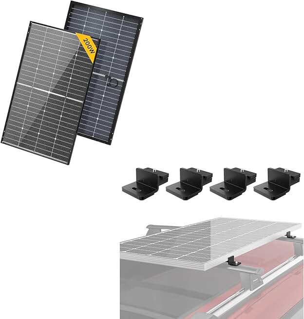 BougeRV Heavy Duty Solar Panel T-Slot Mounting Kit Fits for Auto Cross Bars with T-Track and 1 PCS 24V N-Type 16BB 200W Bifacial Solar Panel, 24V 200 Watt Solar Panel