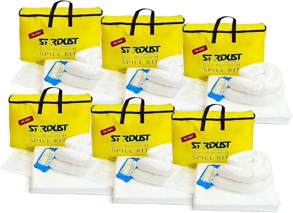 STARDUST Spill Products 6-Pack, Quick Response Oil-Only Spill Kit - Pack includes: Yellow Duffle Bag, (15) Oil-Only Sorbent Pads, (2) 3"x4' Oil-Only Sorbent Socks, (4) Disposal Bags, Nitrile Gloves