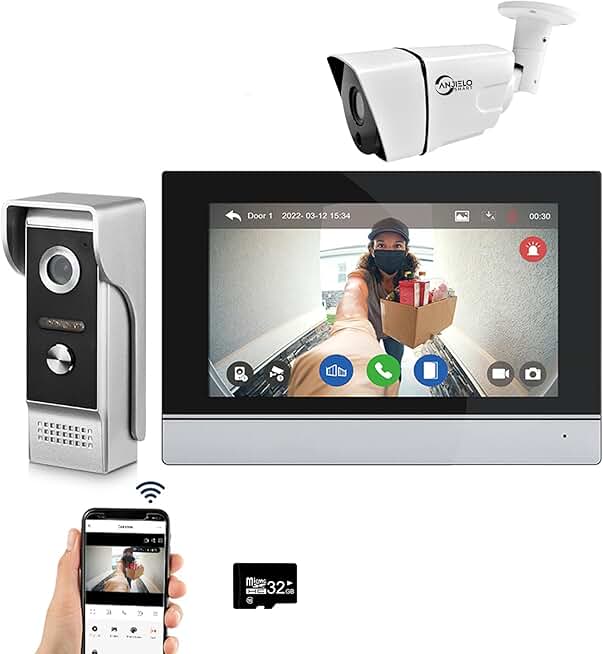 Wired Video Intercom System Tuya WiFi 7 Inch Touch Screen 1080P Doorbell Camera Intelligent Tuya APP Intercom Kit with Motion Detection,Anti-Tamper Alarm,32G (1 Doorbell+1 Monitor+1 Camera)