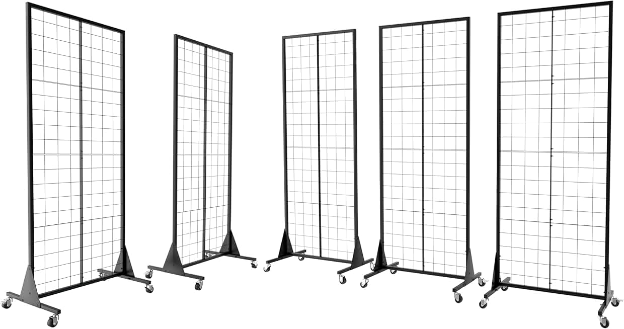 5-Pack 2'x5.5' Ft Gridwall Panel Display Stand Heavy Movable Floorstanding Grid Wall Panels Retail Display Rack Craft Show Wire Grid Wall with T-Base 5-Pack Black