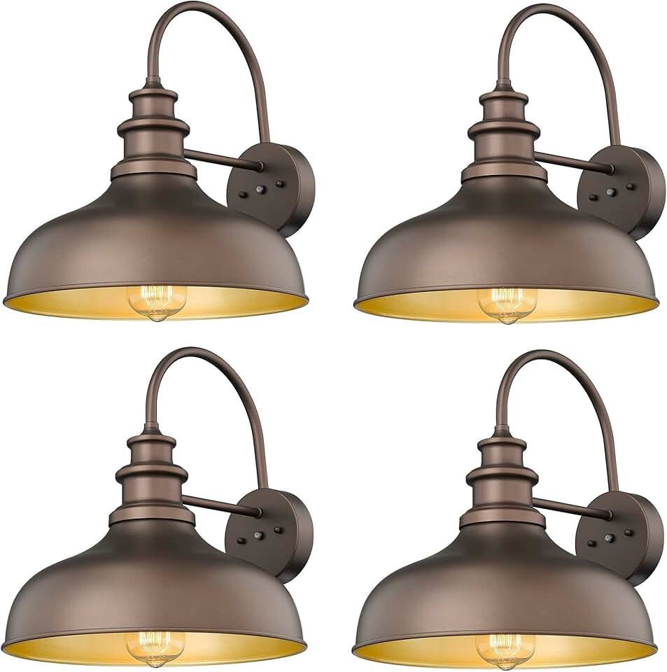 Bestshared Dusk to Dawn Sensor Farmhouse Gooseneck Barn Light, Outdoor Wall Sconce, Outdoor Wall Lantern for Porch,gooseneck Exterior Light Fixtures Porch Lights Outdoor (Orb+Gold, 4 Pack)