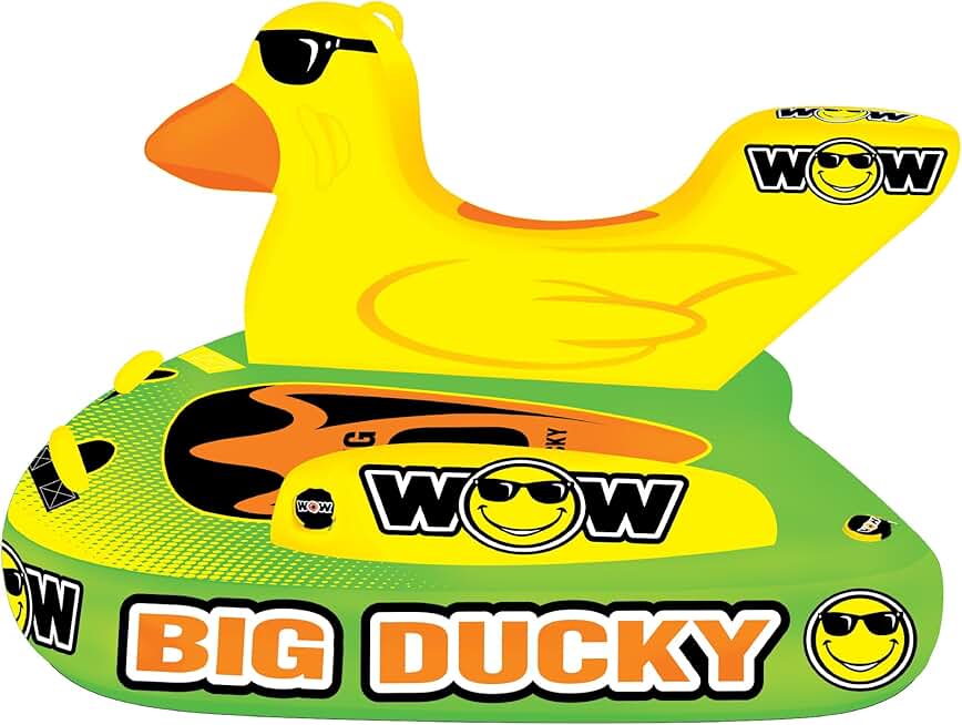 WOW Sports Big Ducky 1-3 Person Inflatable Towable Deck Tube, Yellow - Secure Saddle Seating, Wing-Shaped Deck, Heavy-Duty Nylon, Universal Fit