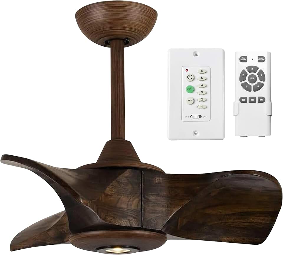 Small Ceiling Fan with Lights & Remote – 22" Wooden, 3-Blade Ceiling Fan with 5W LED Spotlight & Downrods – Low-Profile Ceiling Fan with Light for Bedroom, Bathroom, & More (Dark Wood)