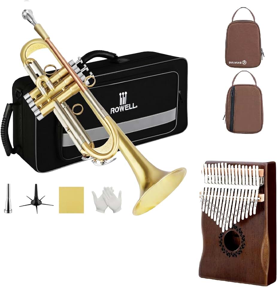 ROWELL Trumpet Standard Bb Trumpet Set Trumpet for Beginners with 17 key kalimba,Gloves,7C Mouthpiece and Trumpet Clean Kit (Antique Finished)