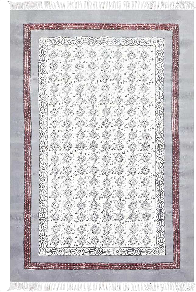 Cotton Washable Rug 4x7 Embroidery Handmade Cotton Rug Gray Beige Cotton Rug Outdoor Area Rug for Patio Flatweave Rug Modern Kitchen Rug Indoor Door Mat Throw Carpet for Entryway Laundry Room