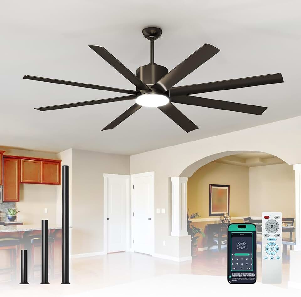 ULG 72 Inch Black Ceiling Fan with Light and Remote & App Control, Indoor Outdoor Ceiling Fan Light with 8500 CFM 6-Speed Strong Wind, 3 Colors Dimmable Reversible Quiet DC Motor, 8 Blades