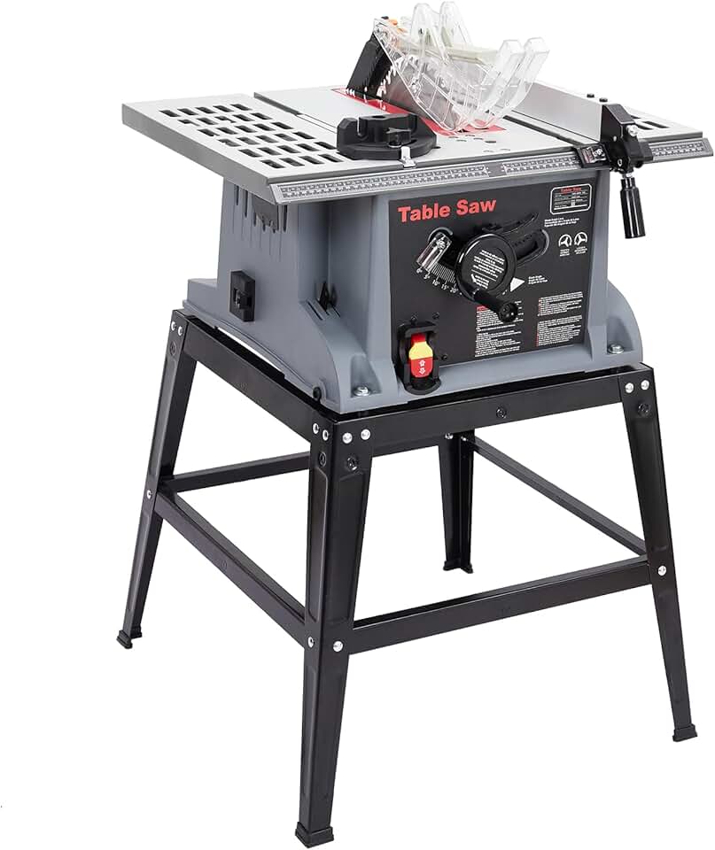 10in Table Saw, 1800W 5000RPM Table Saw with Stand, Safety Switch, Push Stick, 90°Cross Cut & 0-45°Cutting, Multifunctional Table Saw for Woodworking, DIY Working