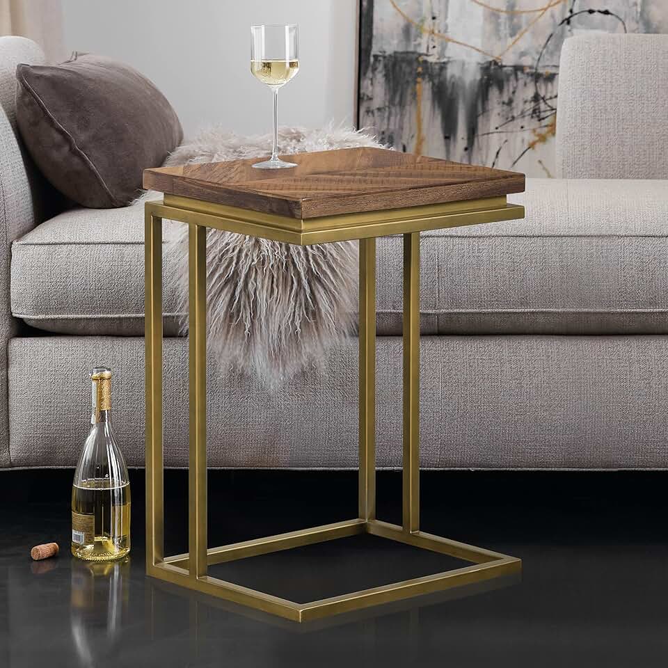 Armen Living Faye End Table, 17.7" W, Rustic Mixed Oak, Acacia, Pine/Brass Antique Base