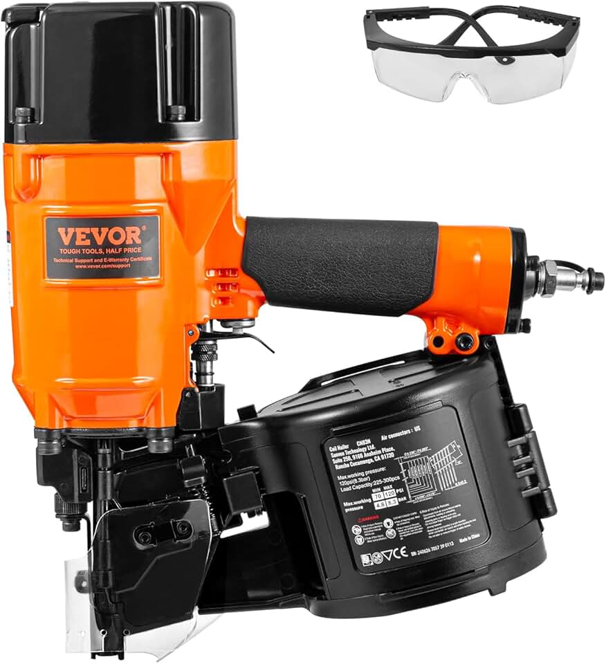 VEVOR Coil Siding/Framing Nailer CN83N, 2" to 3-1/4" 15 Degree Pneumatic Siding Nail Gun with Tool-Less Depth Adjustment, 70-120PSI Air Coil Nailer for Siding Sheathing Wooding Fencing Decking